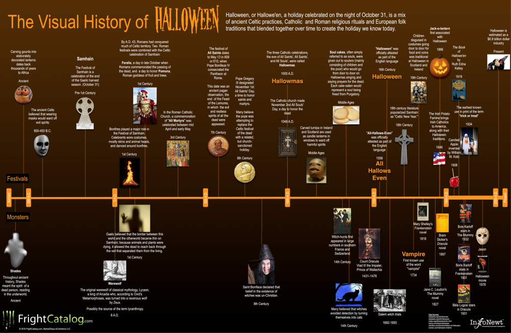 It’s that time of year again, the leaves are falling, the smell of pumpkin (and pumpkin flavored everything) is in the air. Everyone is scattered about looking for the perfect costume for October 31st. Today, Halloween is perceived as a highly commercialized holiday, paid for and promoted by major corporations. Kids dress up in colorful costumes based on their favorite characters and go door to door asking for candy, while many young adults dress up in sultry or basic costumes to attend parties. This holiday wasn’t always a pop culture parade that sexualizes and glamorizes the scary or spooky things of years past, it has gone through many changes over time to reach the point it has now.
